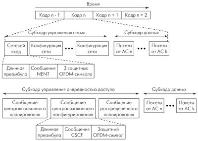 Остальные режимы разработаны для диапазонов менее 11 ГГц. Один из них – WirelessMAN-SCa – это «низкочастотная» вариация WirelessMAN-SC (с рядом дополнительных механизмов, в частности допускается 256-позиционная квадратурная модуляция 256-QAM). Другой, WirelessHUMAN, предназначен для работы в безлицензионных диапазонах (США и Европа). Зато два оставшиеся режима – WirelessMAN-OFDM и WirelessMAN-OFDMA – это принципиально новые по отношению к IEEE 802.16-2001 методы, и на них-то мы обратим особое внимение.
