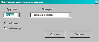 При нажатии на кнопку «Диаграмма успеваемости группы» появляется диалоговое окно: