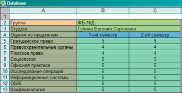 .Cells(1, 1).Value = "Диаграмма успеваемости студента: "