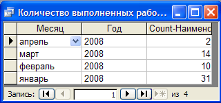 Рисунок 3.14 - Результат запроса «Количество выполненных работ за каждый месяц»