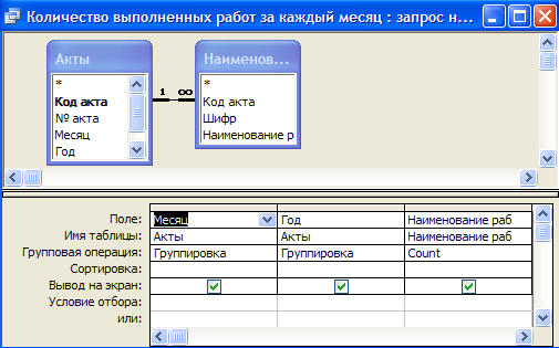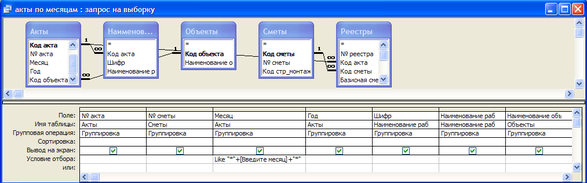 Рисунок 3.8 - Построение запроса «Акты по месяцам»