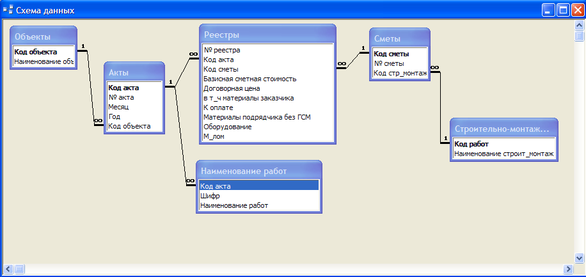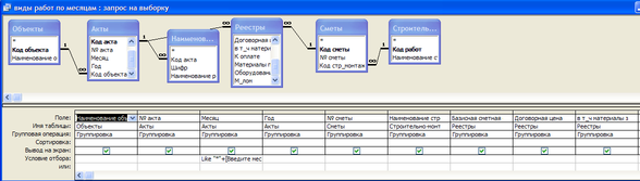 Рисунок 3.11 - Построение запроса «Виды работ по объектам»