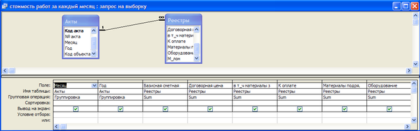 Рисунок 3.15 - Построение запроса «Стоимость работ за каждый месяц»