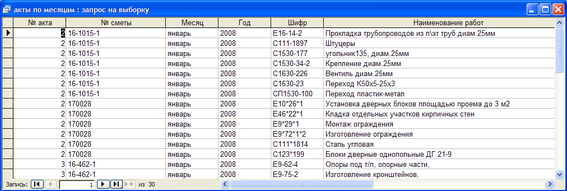 Рисунок 3.9 - Результат запроса «Акты по месяцам»