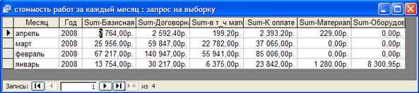 Рисунок 3.16 - Результаты запроса «Стоимость работ за каждый месяц»
