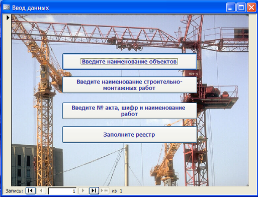 Данная форма содержит кнопки для открытия дополнительных форм для ввода данных.