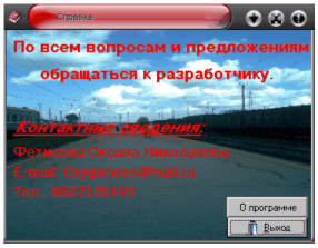 1. Svedeniya – форма информации о названии данного ПП и разработчике (рис.15).
