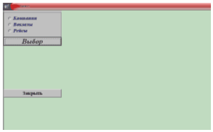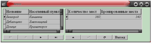 1. Zapros 1 – форма формируемого запроса, находящего рейс по названию вокзала (рис.11).