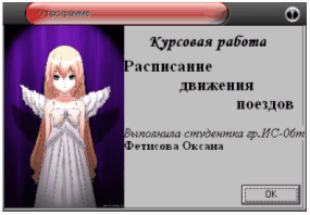 В ходе выполнения курсовой работы по теме: «Разработка автоматизированной системы для контроля железнодорожного движения » было разработано приложение, представляющее собой данную автоматизированную систему и выполняющее все задачи, которые были поставлены при анализе предметной области «Железная дорога».