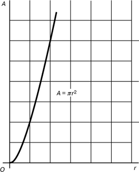 Рисунок 1. График функции A = pr2 (площадь круга как функция радиуса).