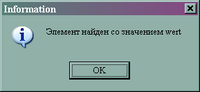Поиск: задаем искомый ключ в редактор ввода Edit, нажимаем кнопку«Найти», выдается сообщение об успешности поиска, если элемент найден, то в панели задач указывается количество сравнений .