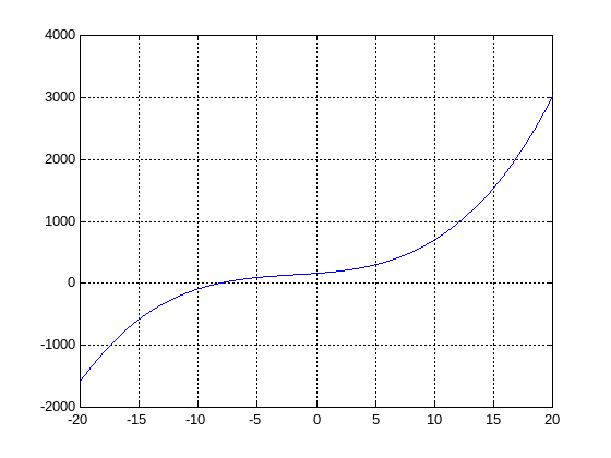 Рис.2. График характеристического полинома (3) на интервале