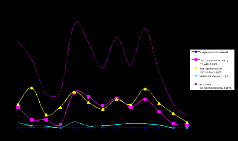 | сырье, м погонный | затраты на оплату труда, тыс.руб. | материальные затраты, тыс.руб | амортизация, тыс.руб. | полная себестоимость, тыс.руб | |