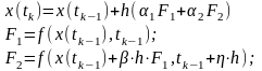 Из вышеуказанных общих формул (8) получают формулы метода Рунге-Кутты 2-ого порядка m=2;