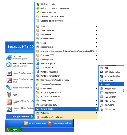Запускается Delphi обычным образом: Пуск → Все программы→ Borland Delphi 7 → Delphi 7 (рис. 6),