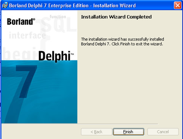 Если выбран тип установки Typical, то в результате щелчка на кнопке Next открывается окно Destination Folder, в котором указаны каталоги, куда будет установлен пакет Delphi и его компоненты. Очередной щелчок на кнопке Next открывает окно Save Installation Database, в котором пользователю предлагается сохранить информацию о процессе установки на жестком диске компьютера, что обеспечит возможность удаления (деинсталляции) Delphi в дальнейшем без использования установочного CD-ROM. На этом процесс подготовки к установке заканчивается. На экране появляется окно Ready To Install the Program, щелчок на кнопке Install в котором активизирует процесс установки. По окончании процесса установки на экране появляется окно с информационным сообщением о том, что установка выполнена (рис. 3). Щелк на кнопке Finish закрывает это окно.