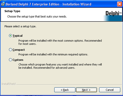 При компактной установке на жесткий диск компьютера копируются только самые необходимые компоненты Delphi. Компактный вариант требует наименьшего количества свободного дискового пространства. Однако в этом случае некоторые возможности среды разработки Delphi будут недоступны. В частности, при компактной установке на жесткий диск не копируются файлы справочной системы, некоторые компоненты и утилиты, примеры.