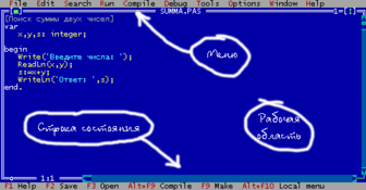 Основной экран интегрированной среды разработчика Turbo Pascal 7.0 выглядит следующим образом:
