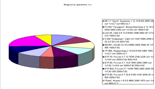 Диаграмма 2 отображает зависимость мощности двигателя от марки БТР.