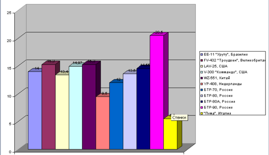 Диаграмма 1 отображает зависимость запаса хода от марки БТР.