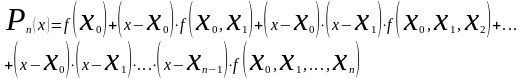 P(x)=P(x0)+(x-x0)P(x0,x1)+(x-x0)(x-x1)P(x0,x1,x2)+…+