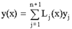 Многочлен Lj(x)×Yj принимает значения Yi в i-й узловой точке и равен 0 во всех других узлах. Из этого следует, что (2) есть многочлен степени n, проходящий через n+1 точку (Xi, Yi).