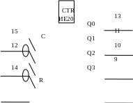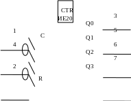 Мікросхема К555ИЕ20 являє собою два чотирирозрядних асинхроних лічильника.