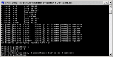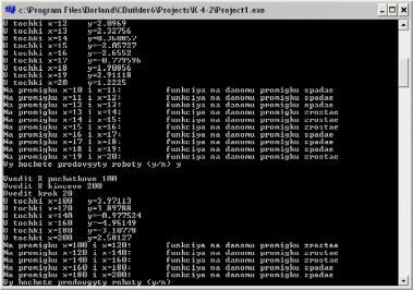 . При роботі користувачу необхідно ввести х початкове, х кінцеве, та крок, на який збільшується значення х від х початкового, х кінцевого.
