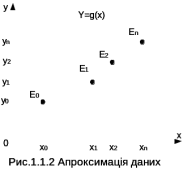 Апроксимація – це наближений опис однією функцією (апроксимувальною) заданого вигляду іншої функції (апроксимовної), яка задається у будь-якому вигляді (при апроксимації даних вона задається у вигляді масивів даних).