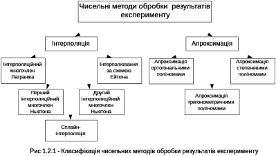 На Рис.1.2.1 приведено класифікацію чисельних методів обробки результатів експерименту.