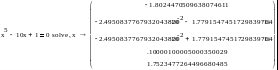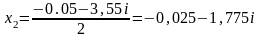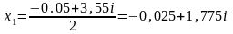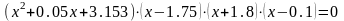 , де 1,75; 1,8; 0,1 – дійсні корені рівняння. Прирівнявши перший множник до нуля , знайдемо приблизні значення комплексних коренів рівняння, яких має бути два: