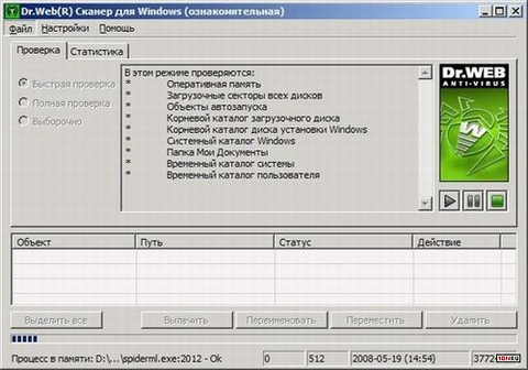 Интерфейс сканера Dr.Web чересчур простой, (для современного коммерческого продукта) и совсем не дружелюбный - в этом отношении антивирус явно уступает всем остальным программам обзора. Серьезные неудобства создает отсутствие в программе единого центра, откуда возможна настройка и управление всеми модулями антивируса.