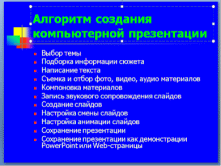 Прежде чем создавать презентацию необходимо определиться с ее содержанием и подобрать необходимые материалы (алгоритм создания презентации).