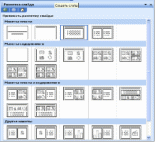 Для создания нового слайда - Вставка>Создать слайд. При этом появляется окно позволяющее выбрать макет слайда.