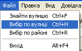 В програмі можна вибрати, ввести та відсортувати по районі вулиці.