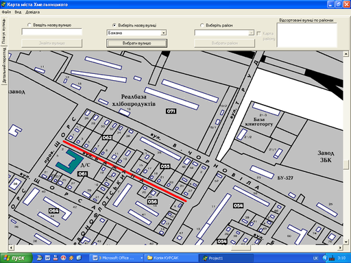 Після введення чи вибору вулиці вона автоматично буде показана на екрані монітора, і ми можемо пересвідчитись в достовірності роботи програми.