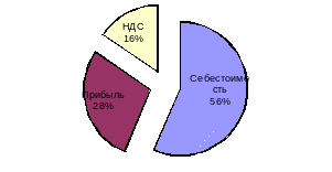 Рисунок 6.2. Процентное соотношение себестоимости, прибыли и налогов для 100 комплектов продукта
