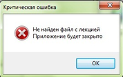 Проведем еще один эксперимент по созданию исключительной ситуации с электронным учебником по дисциплине «Программирование». Теперь студенты удалили файлы с лекциями по темам. При попытке запуска лекций программа выдаст системную ошибку (рисунок 5.3).