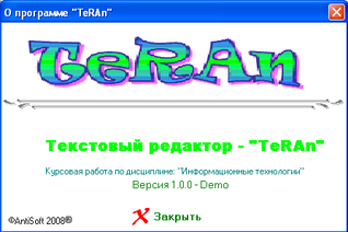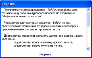 Непосредственно в работе с текстом участвует форма «Справка», представленная на рисунке 2. Текст справки считывается из файла hlp, который всегда должен находится в одной папке вместе с исполняемым файлом TeRAn.exe