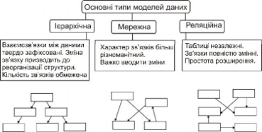 Інформаційна модель ПО БД містить такі основні конструкції: