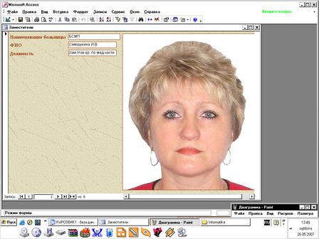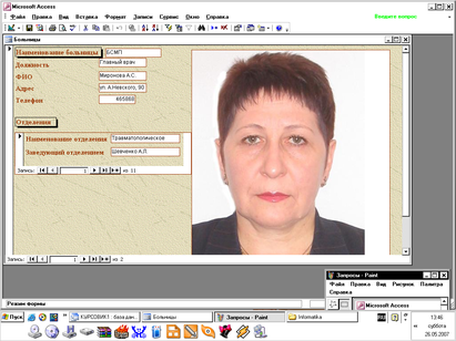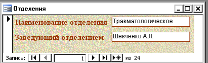 Форма «Больницы» с подчинённой формой «Отделения»