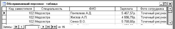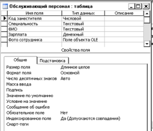 1. Таблица «Обслуживающий персонал»