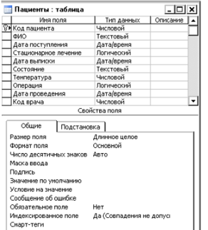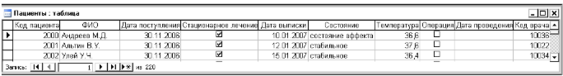 1. Таблица «Пациенты»
