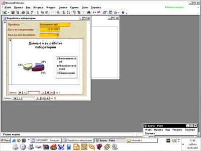 Форма «Выработка лаборатории» с диаграммой