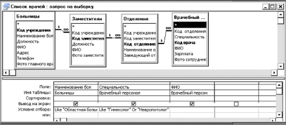 Наиболее простейший тип запросов – запрос на выборку. На основе этого запроса могут создаваться и другие виды запросов: на создание таблицы, на обновление, удаление, добавление.