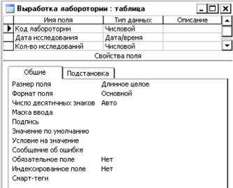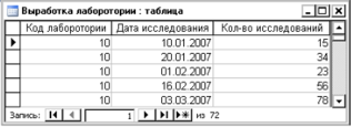 1. Таблица «Выработка лаборатории»