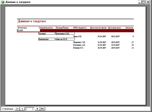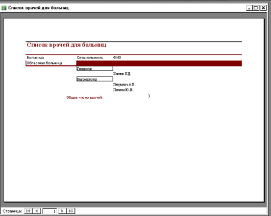 1. Отчёт «Список врачей для больниц»