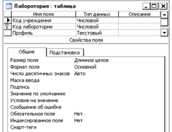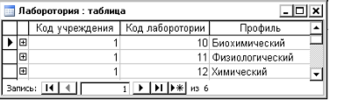 1. Таблица «Лаборатории»