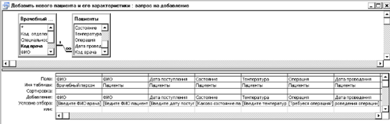 Данный запрос добавляет лечащего врача пациента, а также необходимые сведения, записываемые при поступлении в больницу.
