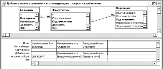 В данном запросе записи (введённые название отделения и Ф.И.О. заведующего) добавляются исключительно для БСМП.